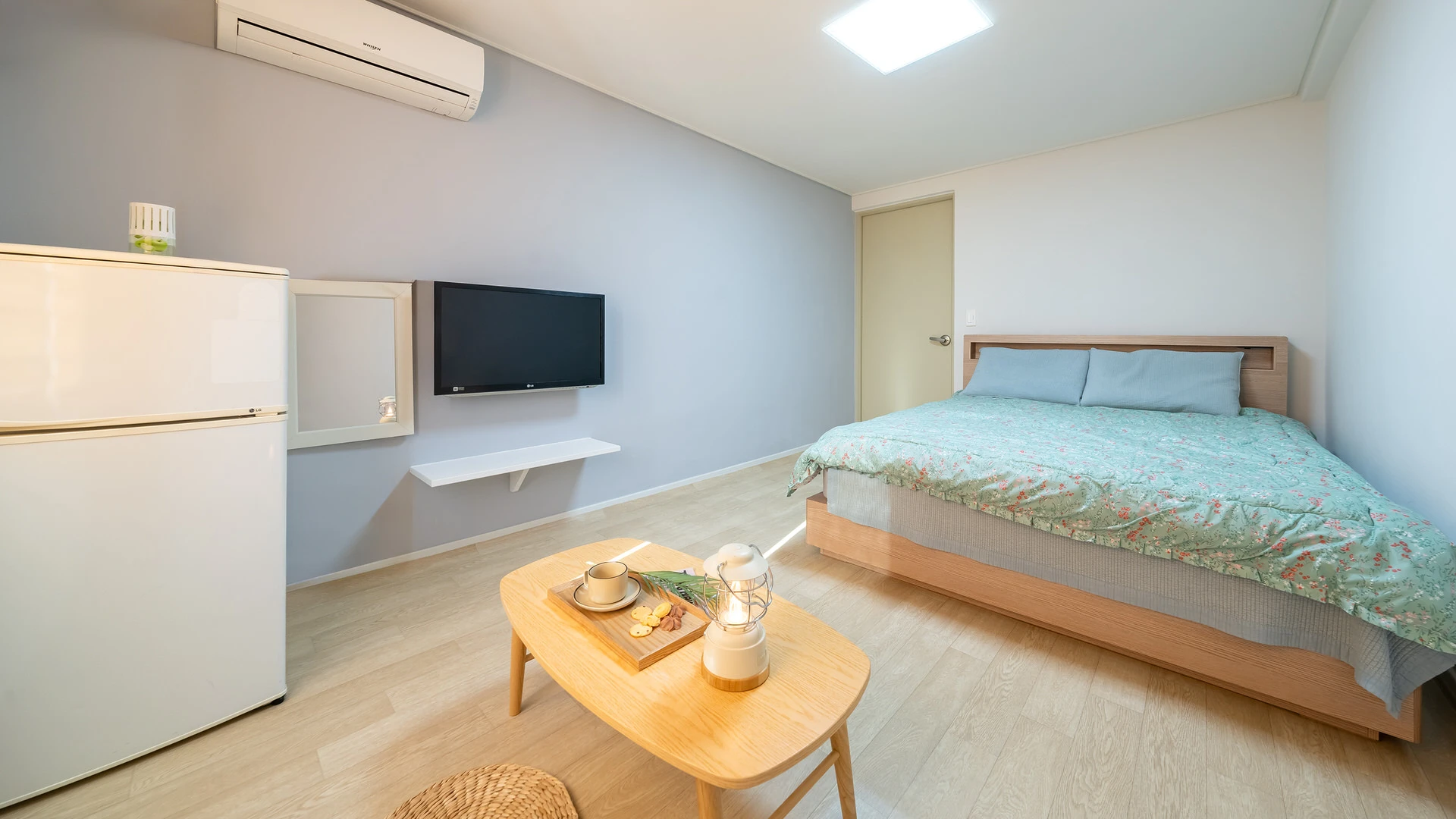 - 집기품목 : TV, 냉장고, 에어컨, 커피포트, 샴푸, 드라이기, 세면도구, 타월, 금연, 와이파이, 욕실용품