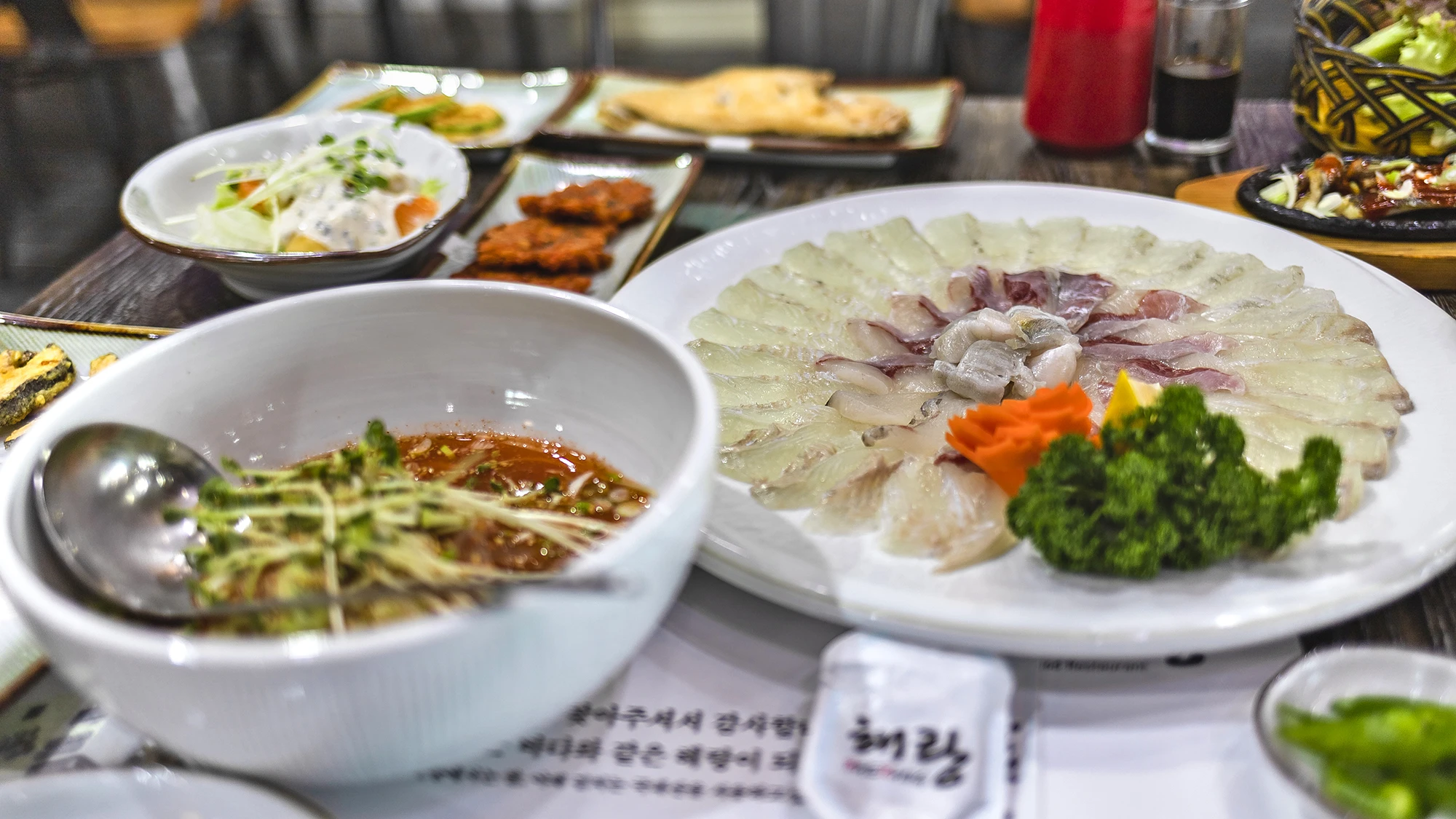1층에 위치한 해랑 횟집에서 다양한 해산물을 즐겨보세요.